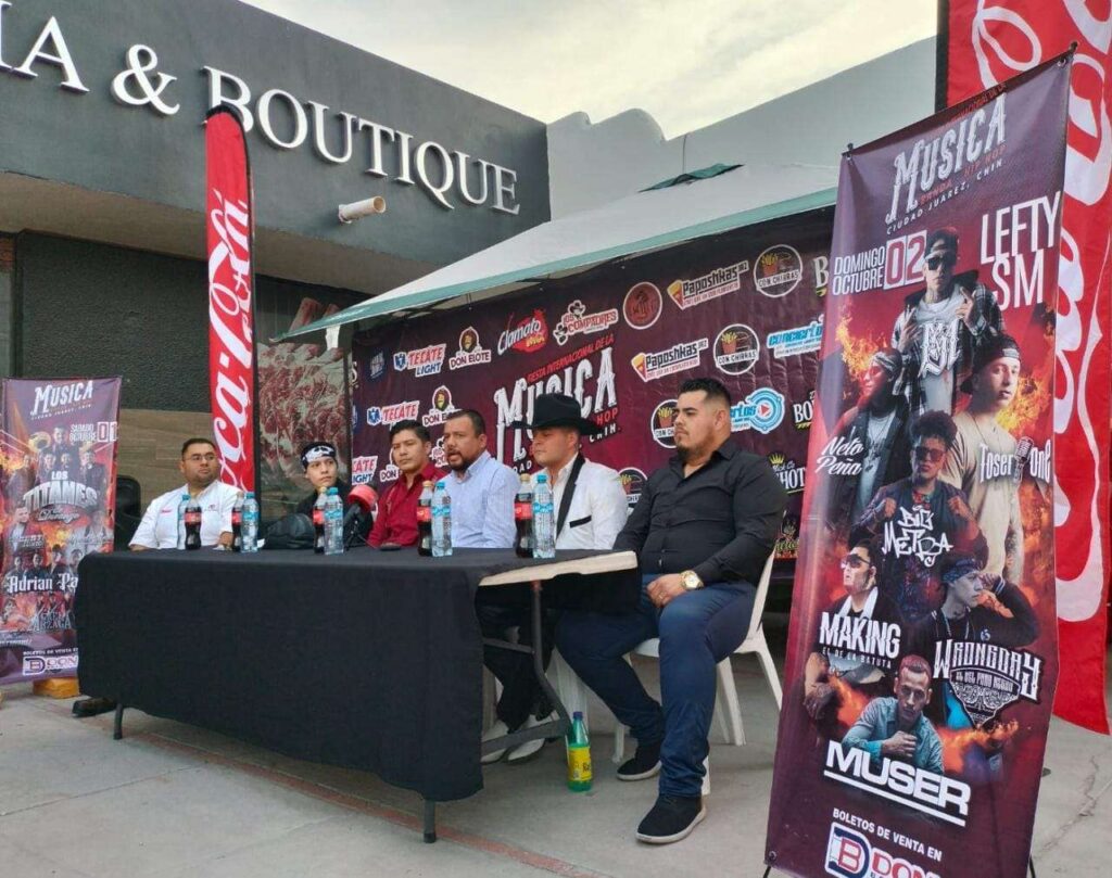 Cd. Juarez, Chih.- Presentan en rueda de prensa el Festival Internacional de la Música Banda-Hip-Hop, en las instalaciones del Novillero cortes selectos. Organizan Jose Trinidad y Ever Segundo que en compañía de talentos locales y patrocinadores como Alfredo Soto, Angel Octavio «WrongDay», Coca-Cola y Bolishots presentaron el programa. Dieron a conocer sobre las grandes sorpresas y costo de las entradas…