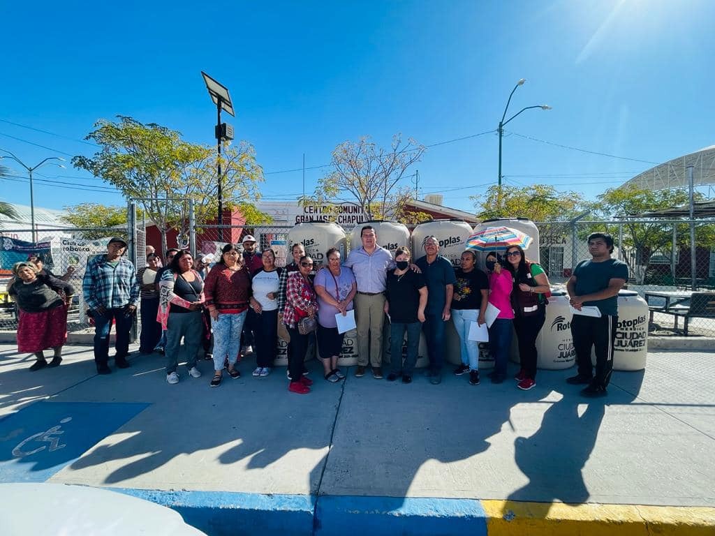 Cd. Juarez, Chih.- Con el fin de seguir apoyando a las familias que carecen del suministro de agua potable a través de la red de distribución o tienen poca presión en sus hogares, la Dirección General de Desarrollo Social entregó 54 tinacos de 450 litros para almacenamiento del líquido.