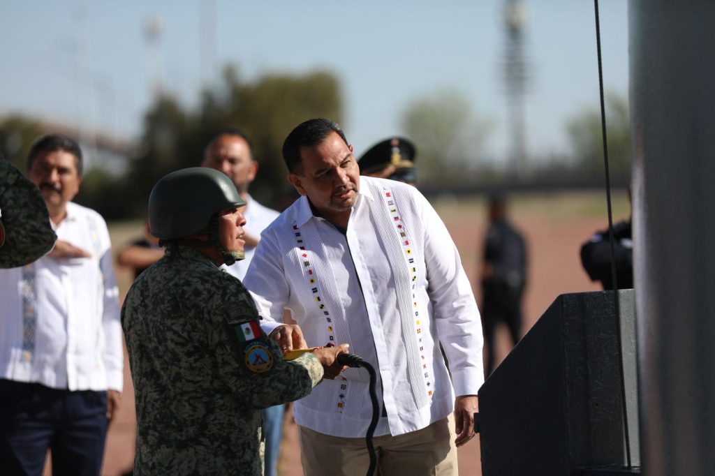 Cd. Juarez, Chih.- El evento dio inicio con el izamiento a la enseña patria en la plaza de la Megabandera, encabezado por el Presidente Municipal, Cruz Pérez Cuéllar y el general brigadier de Estado Mayor, César Gutiérrez López, comandante de la Guarnición Militar de Juárez. El desfile organizado por la Dirección de Educación, en coordinación con la Secretaría de la…